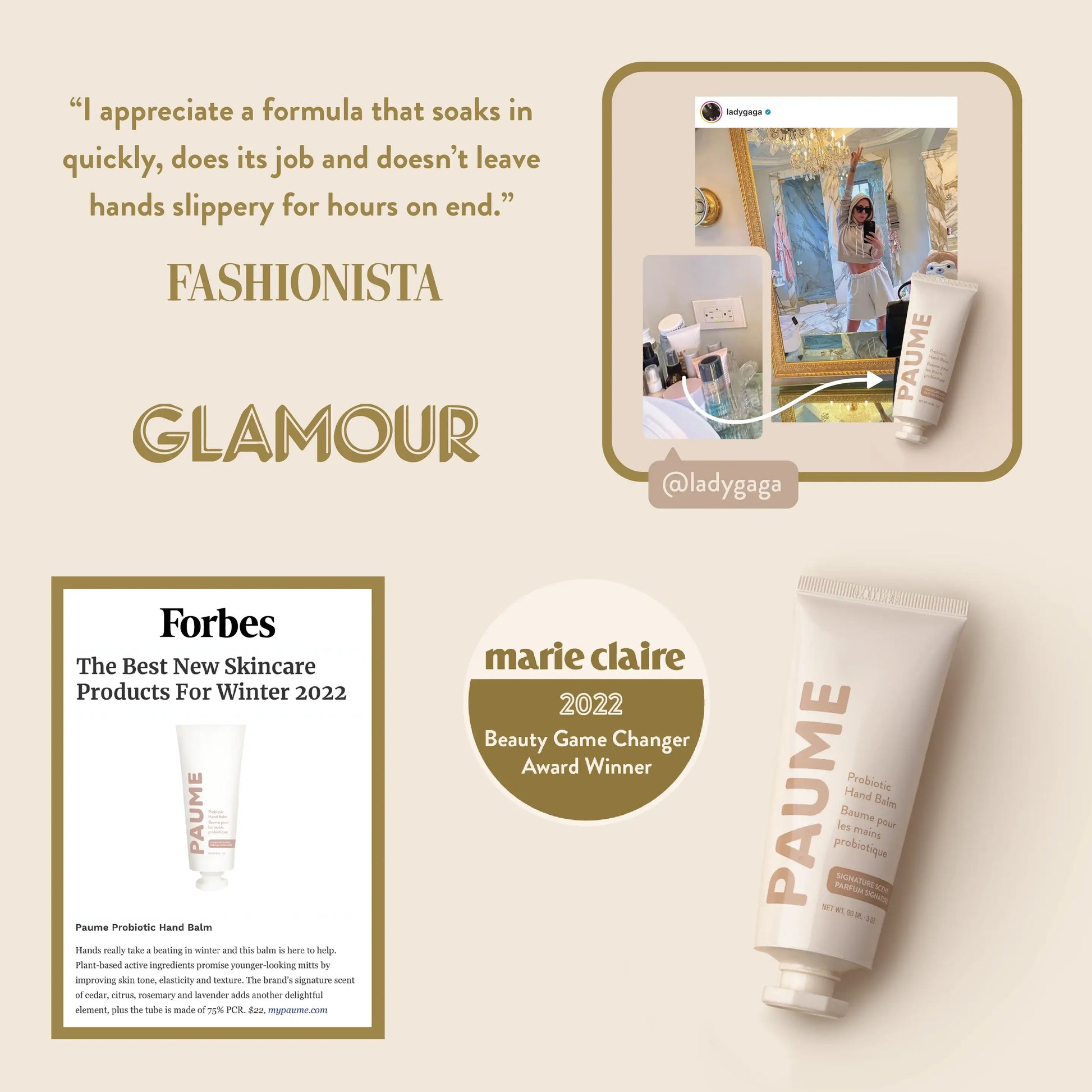 This rich, fast-absorbing hand balm is enhanced with natural probiotics and plant-based emollients that deliver long-lasting hydration and improve skin tone, elasticity and texture.